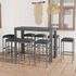 Ensemble de bar de jardin 9 pcs et coussins Resine tressee Gris