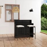 Ensemble de bar de jardin avec coussins 3 pcs Noir
