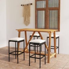 La table est fabriquee en bois d'acacia massif avec une finition a l'huile, ce qui la rend stable, durable et facile a entretenir. Dote d'un cadre en acier enduit de poudre recouvert de resine tressee resistante aux intemperies, ce tabouret de bar est robuste et facile a nettoyer. Les coussins de siege epais et amovibles sont tres confortables. Les housses de coussin avec fermeture eclair peuvent etre facilement enlevees et lavees.