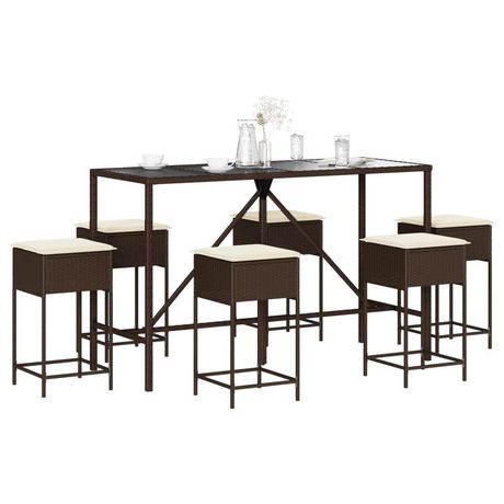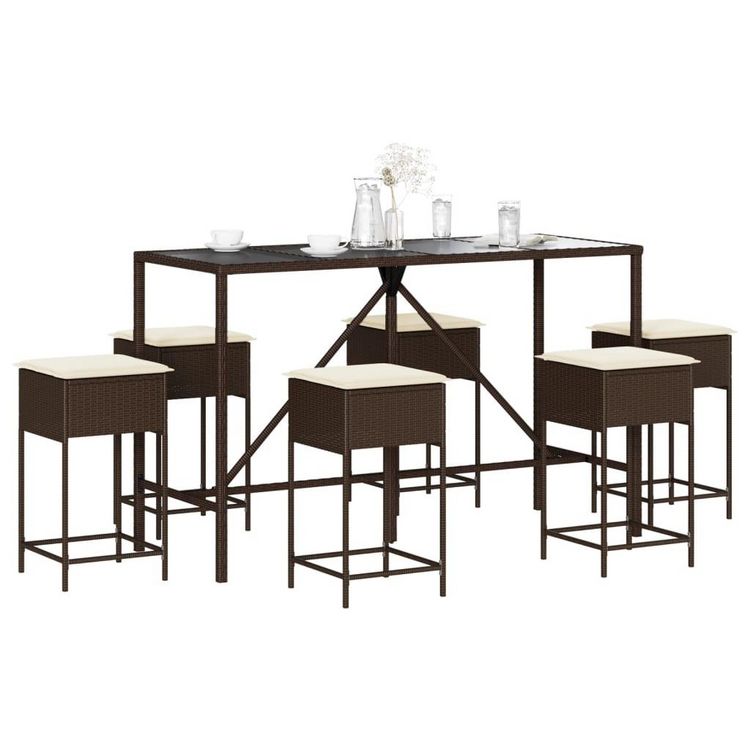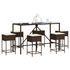 Ensemble de bar de jardin avec coussins 7 pcs marron poly rotin