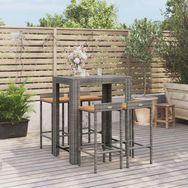 Ensemble de bar jardin 5 pcs gris poly rotin/bois massif acacia