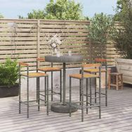 Ensemble de bar jardin 5 pcs gris poly rotin/bois massif acacia