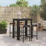 Ensemble de bar jardin 5 pcs noir poly rotin/bois massif acacia