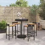 Ensemble de bar jardin 5 pcs noir poly rotin/bois massif acacia