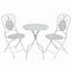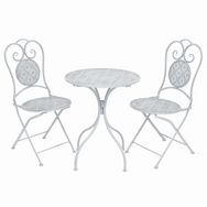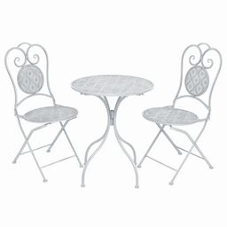 L'ensemble de bistro est en acier enduit de poudre, resistant aux intemperies et tres durable. Les decorations de luxe peintes a la main et la finition rouillee feront la salle a manger se demarquer dans n'importe quel jardin ou sur n'importe quel patio ou balcon. Le mobilier de jardin altique est tres facile a nettoyer avec un chiffon humide. Les chaises peuvent etre facilement pliees pour economiser de l'espace lorsqu'elles ne sont pas utilisees.