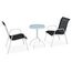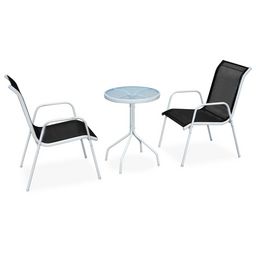 Les chaises confortables sont fabriquees en acier enduit de poudre de haute qualite. Grace au tissu textilene resistant, nos chaises sont resistantes aux intemperies et faciles a nettoyer. Les chaises sont empilables pour economiser de l'espace. La table a un dessus de table de 5 mm d'epaisseur fait de verre ondule trempe, sur lequel vous pouvez placer des boissons, des collations ou des objets decoratifs. Elle est egalement dotee d'un cadre robuste en acier enduit de poudre qui est durable et facile a entretenir. L'assemblage est facile.