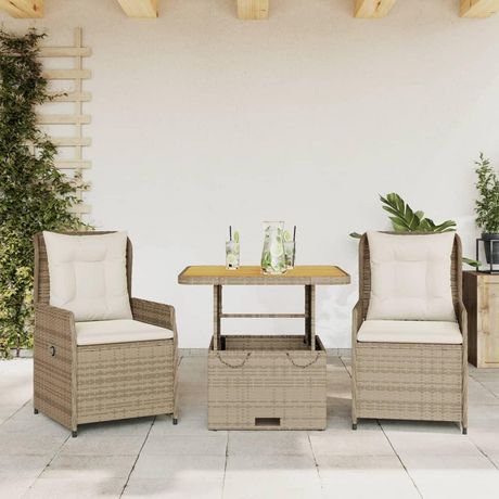 Ensemble de bistro 3 pcs avec coussins beige resine tressee