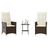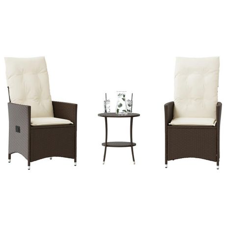 Ensemble de bistro 3 pcs avec coussins marron resine tressee