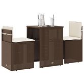 Ensemble de bistro 3 pcs avec coussins marron resine tressee