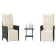 Ensemble de bistro 3 pcs avec coussins noir resine tressee