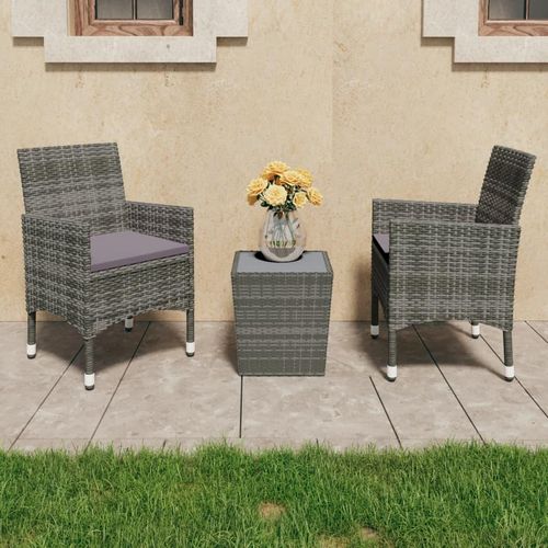 Ensemble de bistro 3 pcs Resine tressee et verre trempe Gris