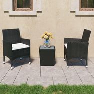 Ensemble de bistro 3 pcs Resine tressee et verre trempe Noir