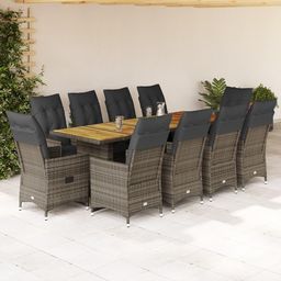 Ensemble de bistro de jardin 11 pcs coussins gris poly rotin