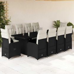 Ensemble de bistro de jardin 11 pcs coussins noir poly rotin