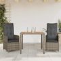 Ensemble de bistro de jardin 3 pcs coussins gris poly rotin
