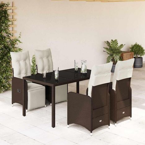 Ensemble de bistro de jardin 5 pcs coussins marron poly rotin