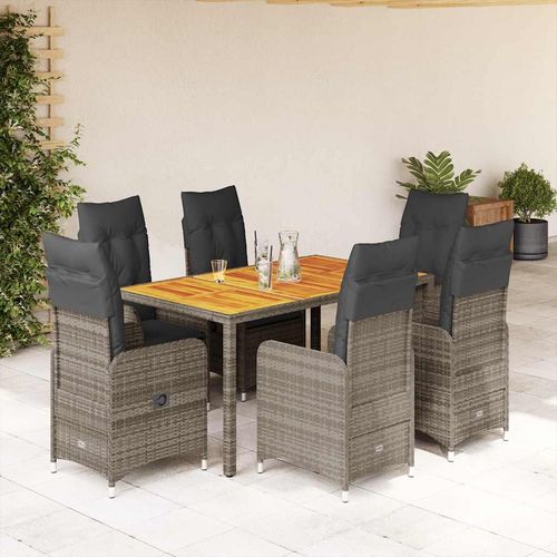 Ensemble de bistro de jardin 7 pcs coussins gris poly rotin