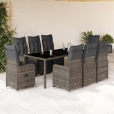 Ensemble de bistro de jardin 9 pcs coussins gris poly rotin