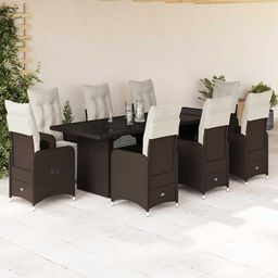 Ensemble de bistro de jardin 9 pcs coussins marron poly rotin