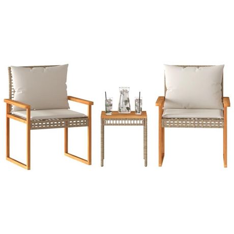 Ensemble de bistro et coussins 3 pcs melange beige rotin acacia