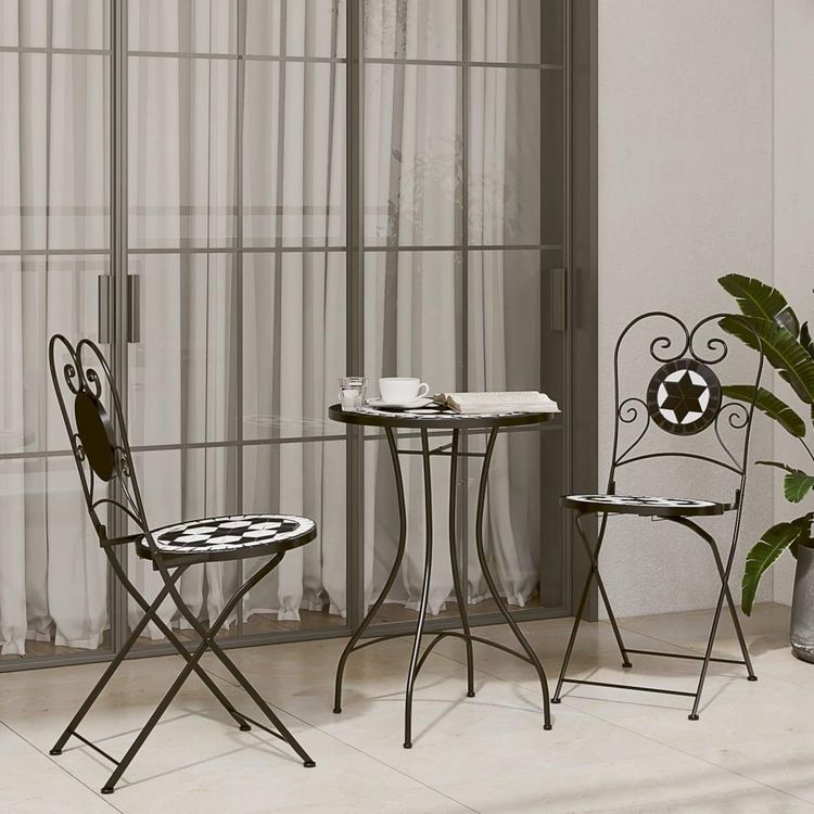 Ensemble de bistro mosaïque noir et blanc fer et ceramique