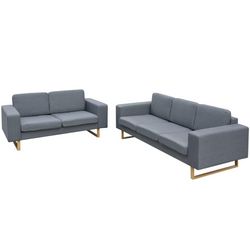L'ensemble de canapes dispose d'un large espace d'assise et de coussins epais pour un confort optimal. Il est rembourre dans un tissu de haute qualite qui est resistant. Les housses de coussin sont faciles a garder propres car elles sont amovibles et peuvent etre lavees a la machine. Le cadre en bois et les pieds en fer forts avec une finition en faux bois decoratif contribuent a sa construction robuste.