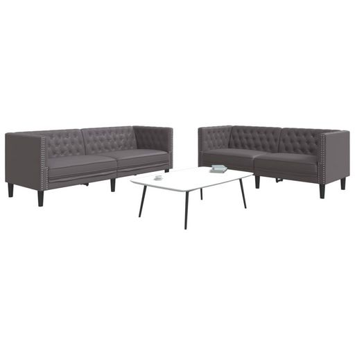 Ensemble de canape Chesterfield 2 pcs gris similicuir