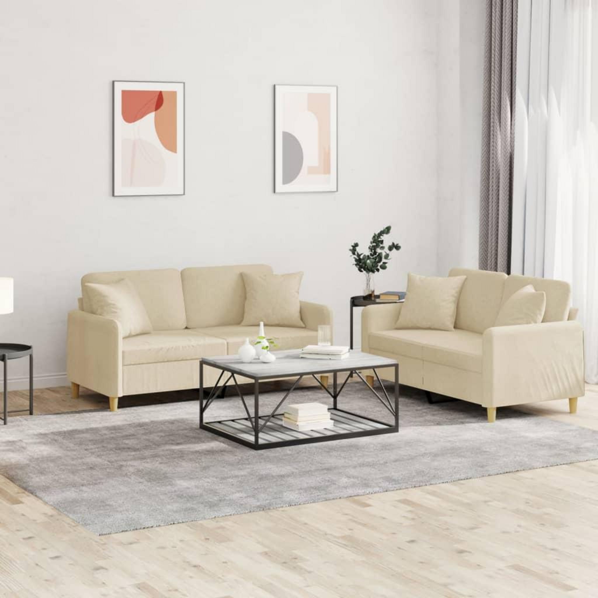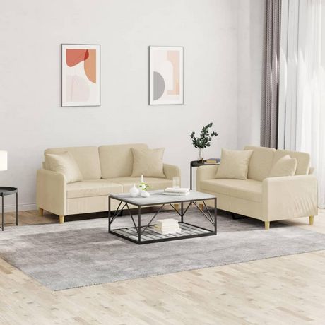 Ensemble de canapes 2 pcs avec coussins creme tissu