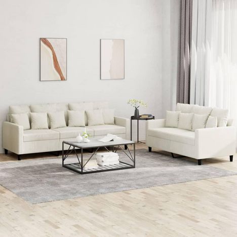 Ensemble de canapes 2 pcs avec coussins Creme Velours