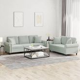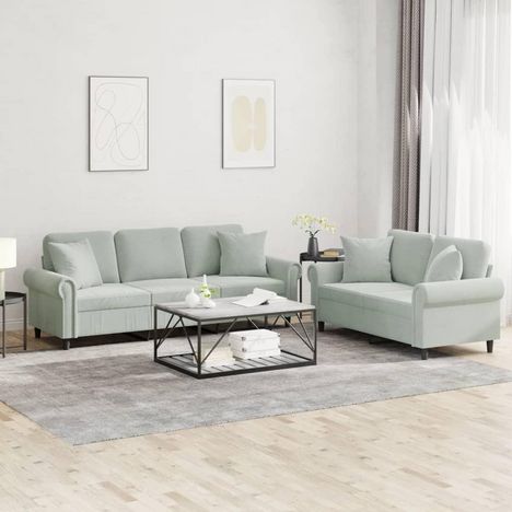 Ensemble de canapes 2 pcs avec coussins gris clair velours