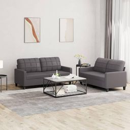 Ensemble de canapes 2 pcs avec coussins Gris Similicuir