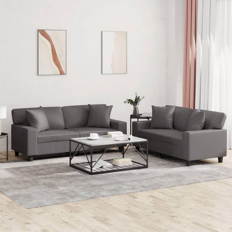 Ensemble de canapes 2 pcs avec coussins gris similicuir