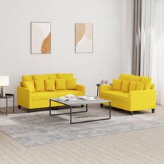 Ensemble de canapes 2 pcs avec coussins Jaune clair Tissu