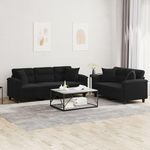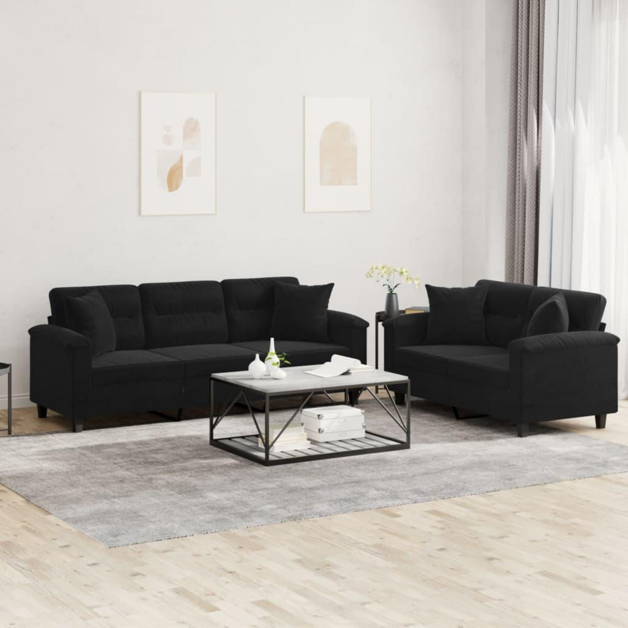 Ensemble de canapes 2 pcs avec coussins Noir Tissu microfibre