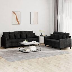 Ensemble de canapes 2 pcs avec coussins Noir Velours