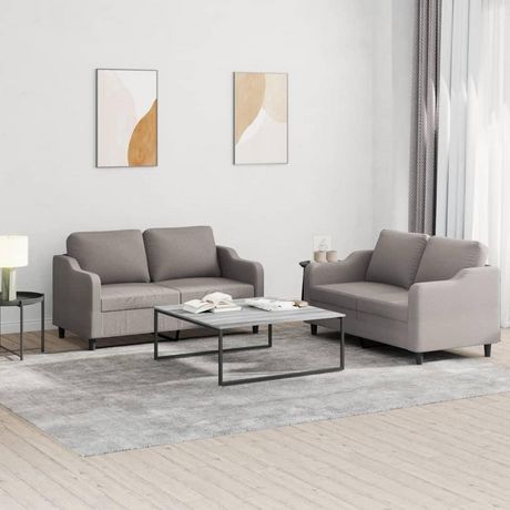 Ensemble de canapes 2 pcs avec coussins Taupe Tissu
