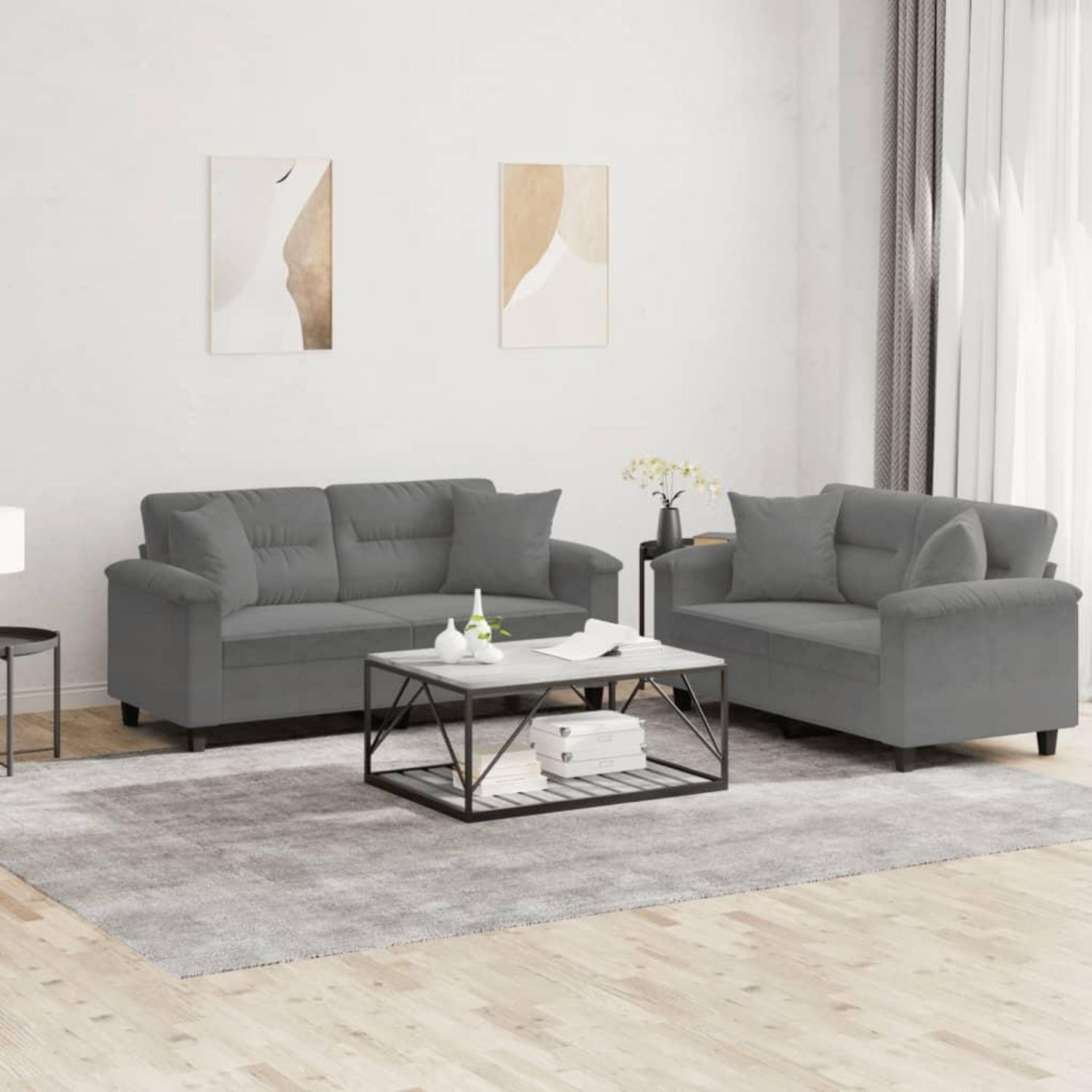 Ensemble de canapes 2 pcs coussins Gris fonce Tissu microfibre