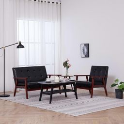 Cet ensemble de canape tres confortable, au design sobre, sera ideal pour bavarder, lire, regarder la television ou simplement vous detendre. L'ensemble de canape est capitonne en similicuir doux et rembourre avec de la mousse pour plus de confort. Avec un cadre en bois massif, le canape est stable