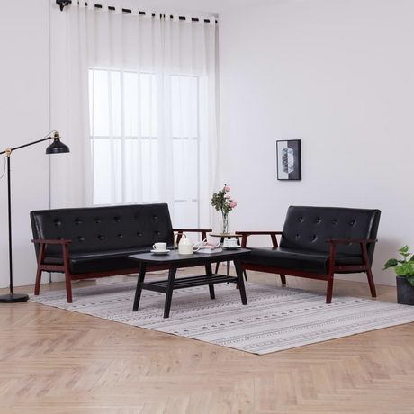 Cet ensemble de canape tres confortable, au design sobre, sera ideal pour bavarder, lire, regarder la television ou simplement vous detendre. L'ensemble de canape est capitonne en similicuir doux et rembourre avec de la mousse pour plus de confort. Avec un cadre en bois massif, le canape est stable