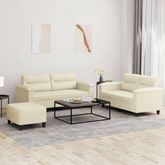 Ensemble de canapes 3 pcs avec coussins Creme Similicuir