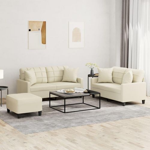 Ensemble de canapes 3 pcs avec coussins creme similicuir