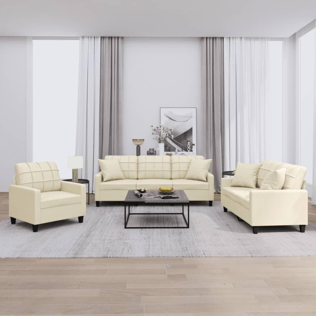Ensemble de canapes 3 pcs avec coussins creme similicuir