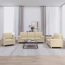 Ensemble de canapes 3 pcs avec coussins creme tissu