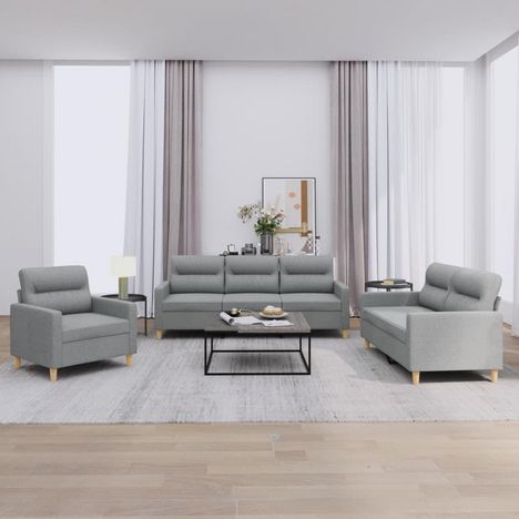 Ensemble de canapes 3 pcs avec coussins Gris clair Tissu
