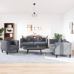 Ensemble de canapes 3 pcs avec coussins gris fonce velours