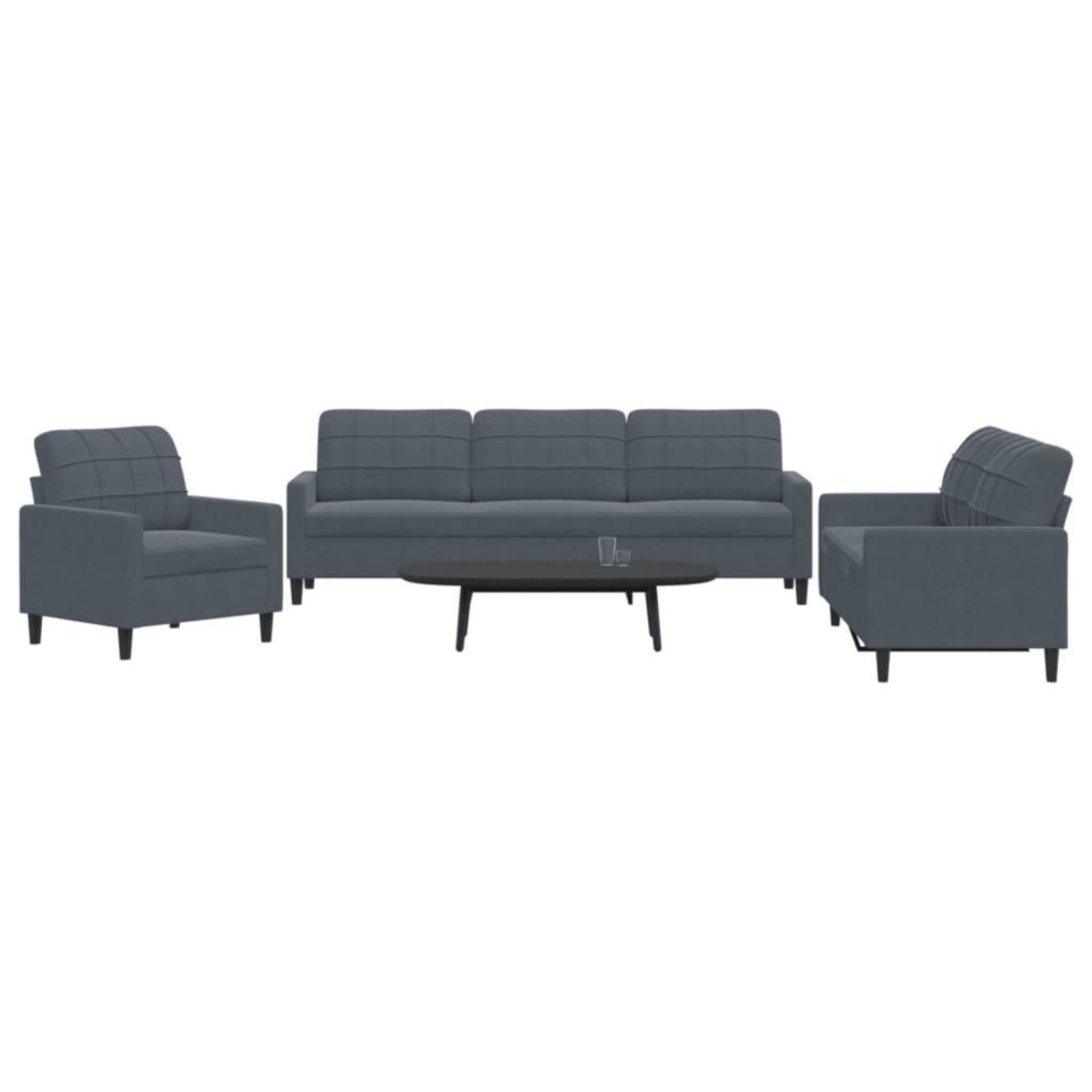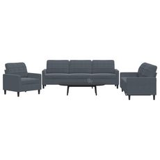 Ensemble de canapes 3 pcs avec coussins Gris fonce Velours