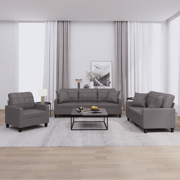Ensemble de canapes 3 pcs avec coussins gris similicuir