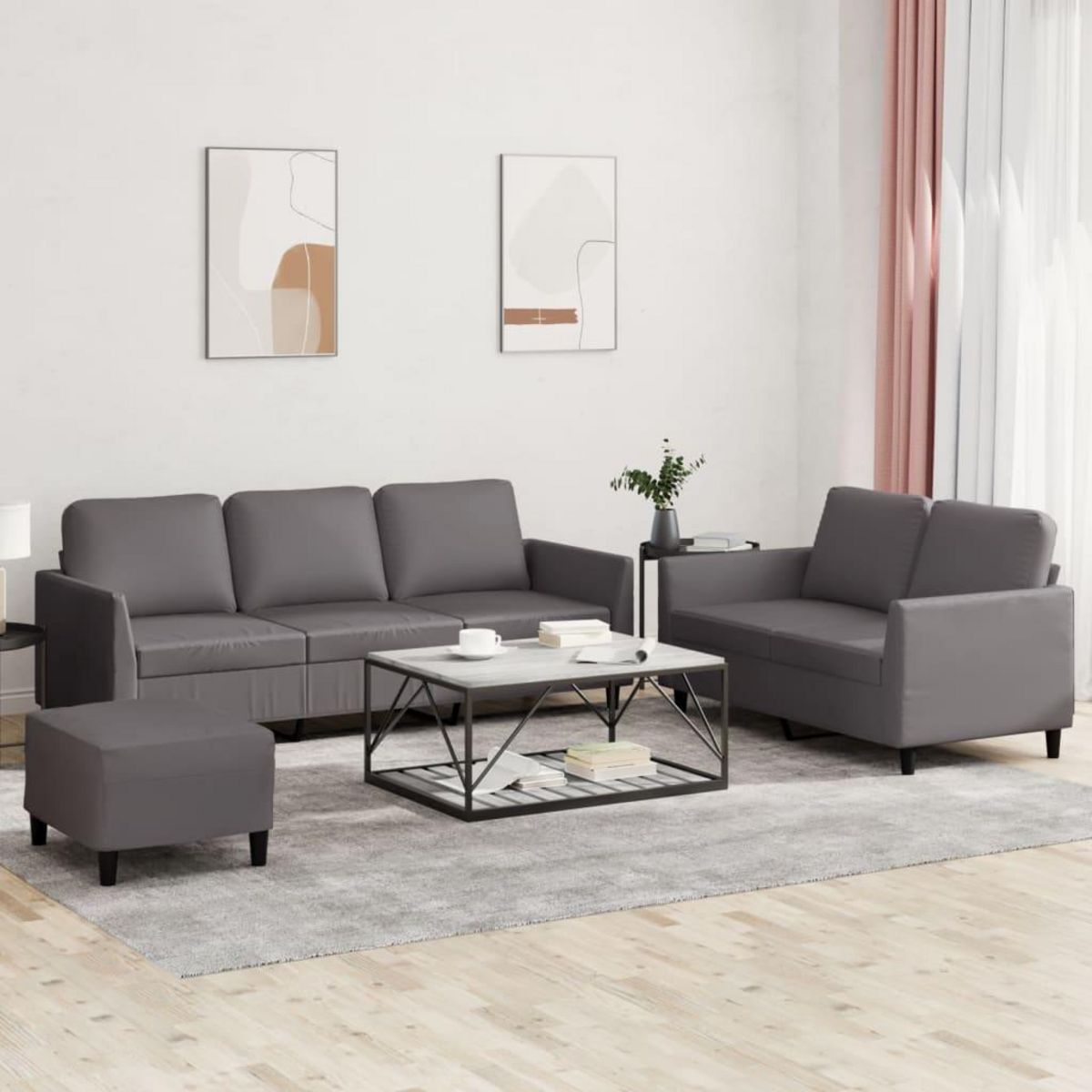 Ensemble de canapes 3 pcs avec coussins Gris Similicuir