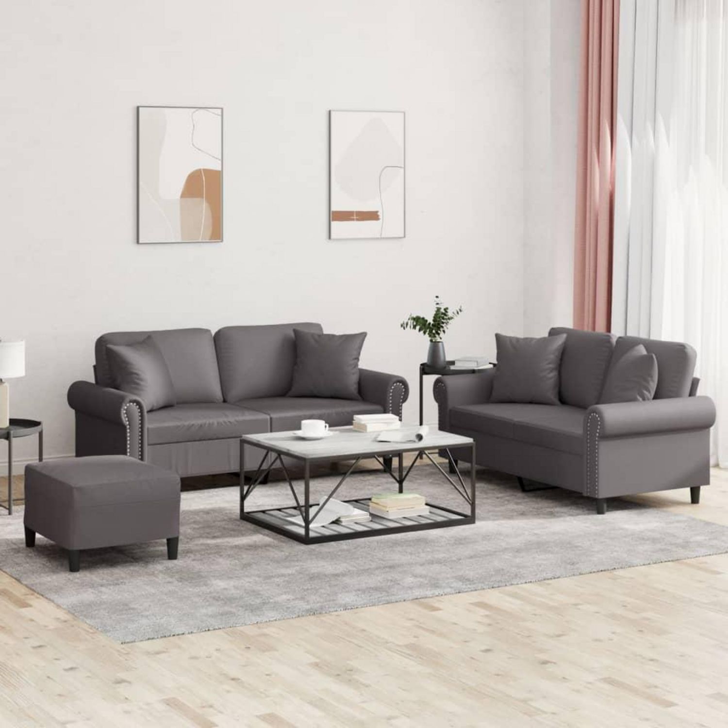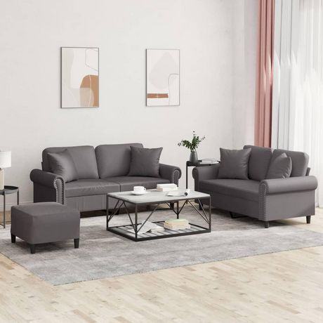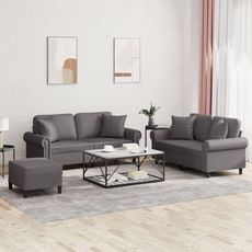 Ensemble de canapes 3 pcs avec coussins gris similicuir