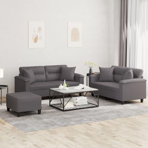 Ensemble de canapes 3 pcs avec coussins gris similicuir